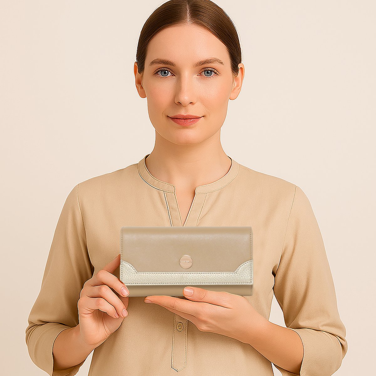 The Esbeda Classic Bi-Tone Wallet blends timeless style with practical design. Crafted from high-quality PU material, it features a refined dual-tone exterior that complements any outfit.