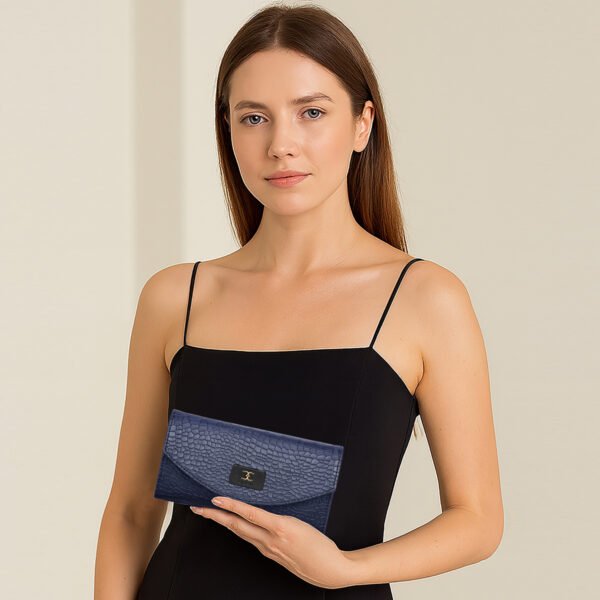 ESBEDA Blue Color Croco Embossed Wallet For Women