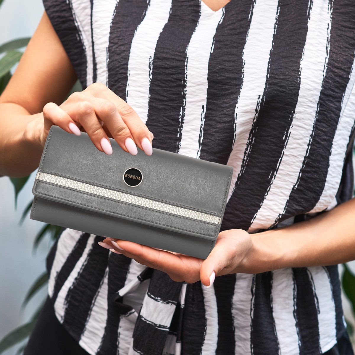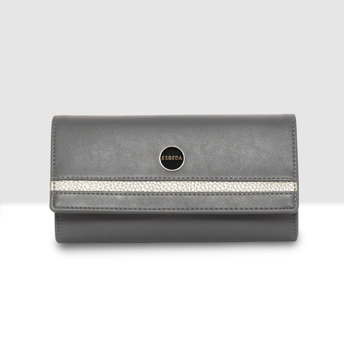 The Esbeda Classic Elegance Women?s Wallet blends timeless design with modern practicality. this wallet showcases a refined Solid color accented by a metallic gold strip for a touch of luxury.