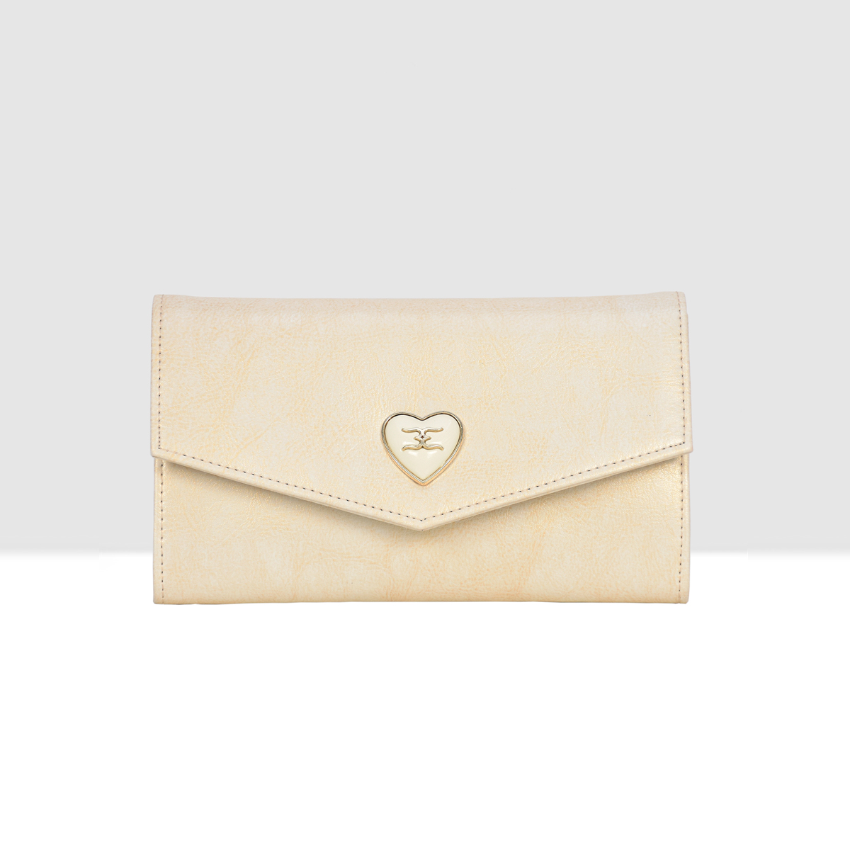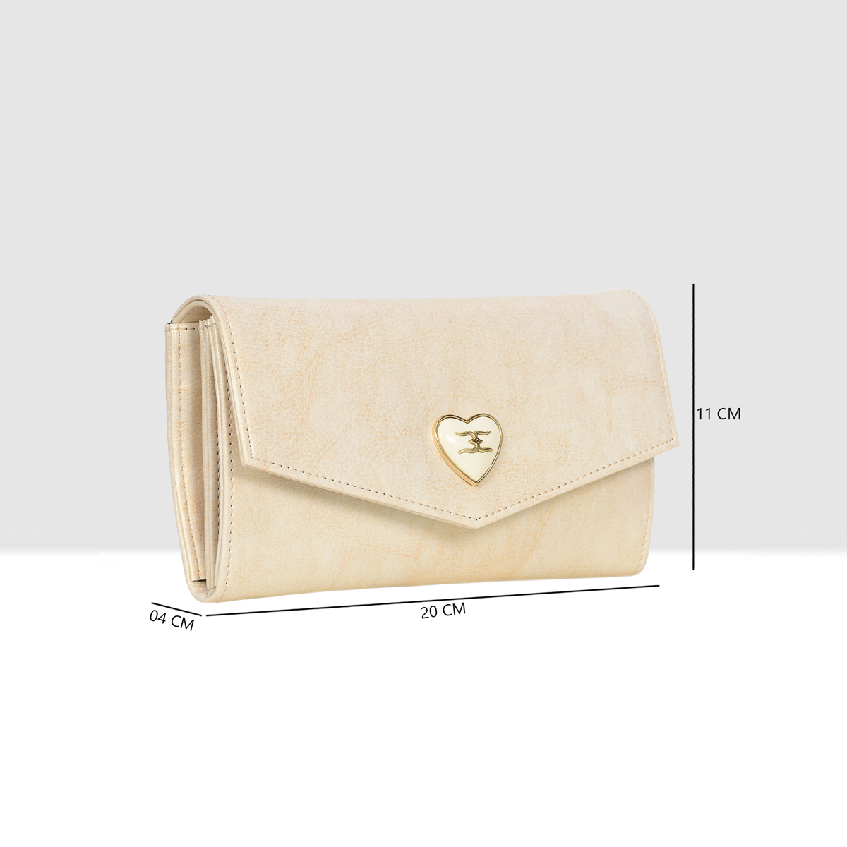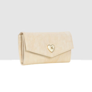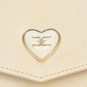 Designed with a refined envelope flap and adorned with a delicate heart-shaped metal emblem, this wallet blends modern sophistication with feminine charm.