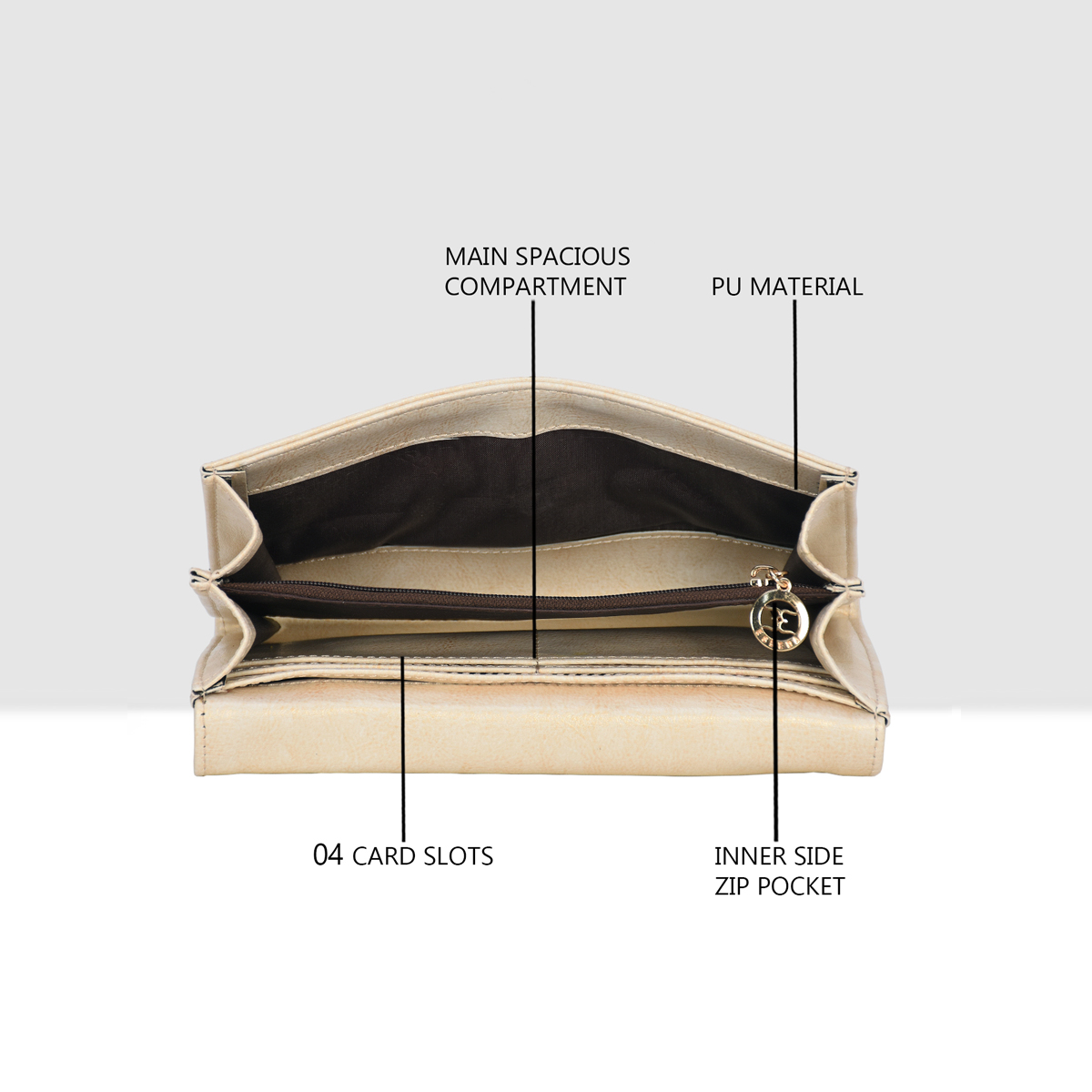 • Elegant Envelope-Flap Design with heart-shaped metal logo for a feminine, premium appeal